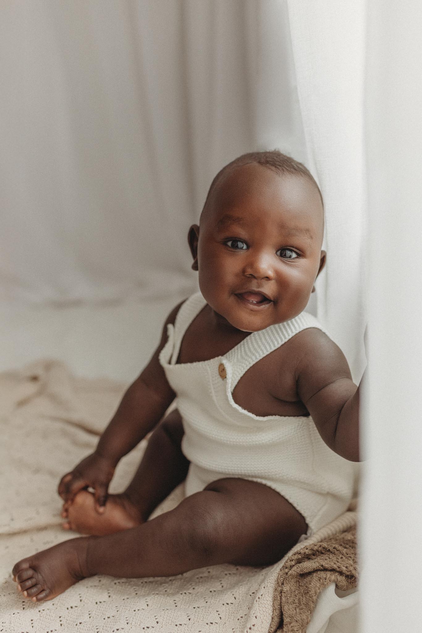 For when bub is 3-6 months old and their eyes are alight with wonder. They’re not little crawlers and mischief makers just yet, but they’re far from their curly, sleepy newborn states. We’ll capture those gorgeous little expressions as bub learns to show them, savouring the bittersweet transition from newborn to baby.